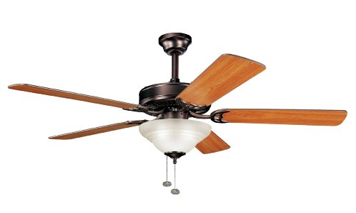 Look Kichler Lighting 339210OBB Sterling Manor Select 52-Inch Ceiling Fan with Umber-Etched Glass, Oil Brushed Bronze